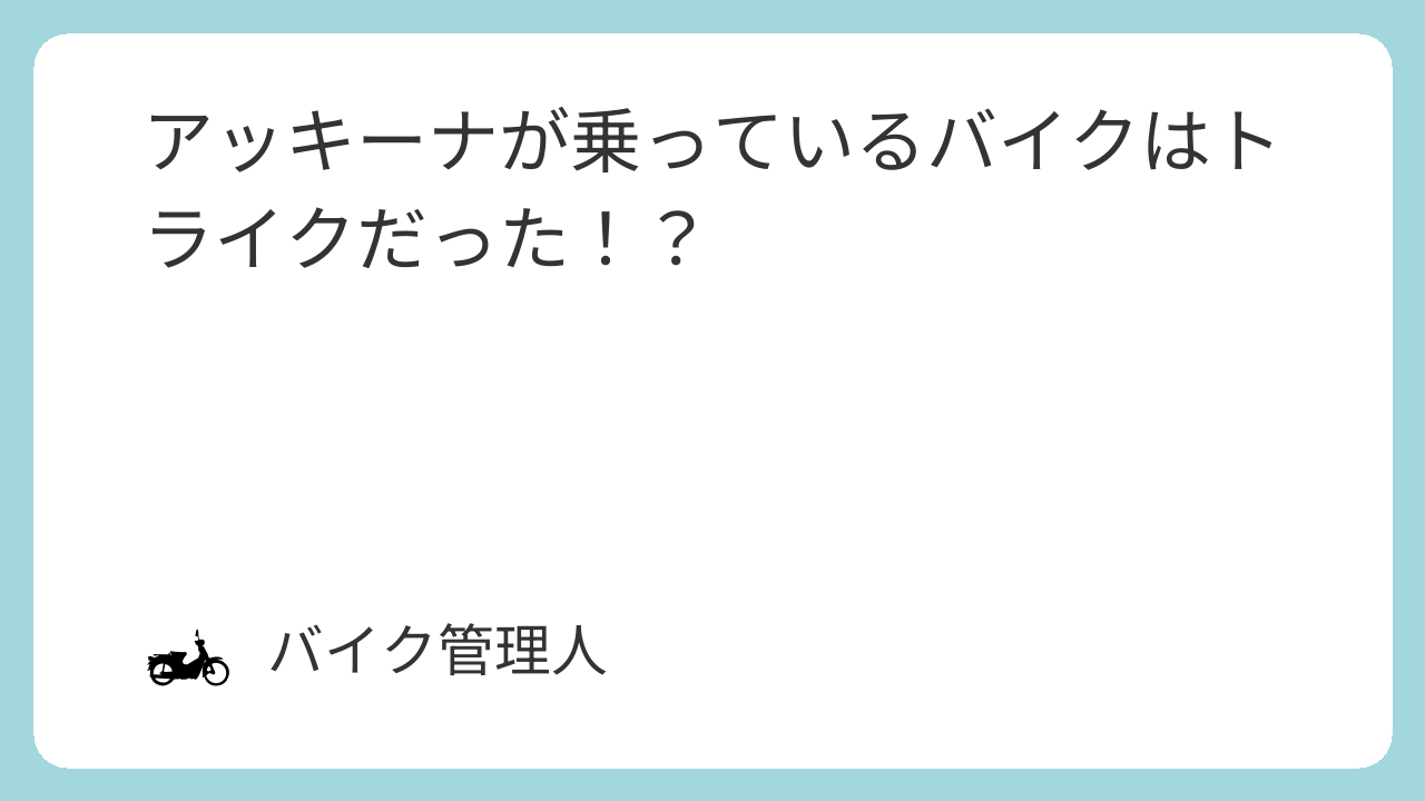アッキーナの愛車はマジェスティトライク。なかなかかなりのやんちゃっぷりですねw。