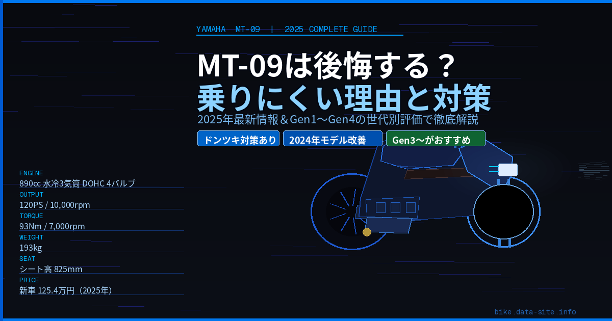 この記事では、MT-09で後悔しがちな具体的なポイントとその対策、そして2024年モデルでどこがどう改善されたかを、オーナーレビューと最新情報をもとに正直にお伝えします。